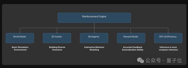 最后一层应用是理想认为最具挑战性的强化学习世界引擎,这一层让模型能在训练环境中自由探索并获得反馈,主要有五大关键因素: