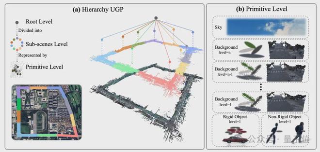该模型分为根、子场景和图元三层。其中根层是入口,然后子场景层将空间进一步划分,并提取出各种元素。最后图元层用定义在4D空间的统一高斯图元(Unified Gaussian Primitive)将元素建模。这个方法可以同时对刚性和非刚性运动重建。