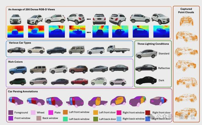 3DRealCar采用完全开放可商用的Apache 2.0开源协议,其包含了2500辆真实汽车,平均每辆车采集了200张高分辨率RGB-D图像,是目前行业唯一的高质量、大规模线度视角和不同光照条件。