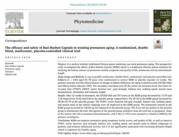 与传统礼品不同,“八子补肾”这类产品强调组方的科学性与功能的可感知性。八子补肾是在中医气络学说精气神理论指导下研发的创新中药胶囊,以菟丝子、枸杞子、五味子等8种种子药滋填肾精,延缓衰老。发表在国际权威期刊《植物医学》(Phytomedicine)的一篇论文介绍了八子补肾胶囊对改善神经精神、皮肤毛发、骨骼肌肉、泌尿生殖方面的早衰症状和生活质量、改善老年人群肌肉力量和功能具有重要意义,并且对衰老标志物端粒酶活性有积极影响。